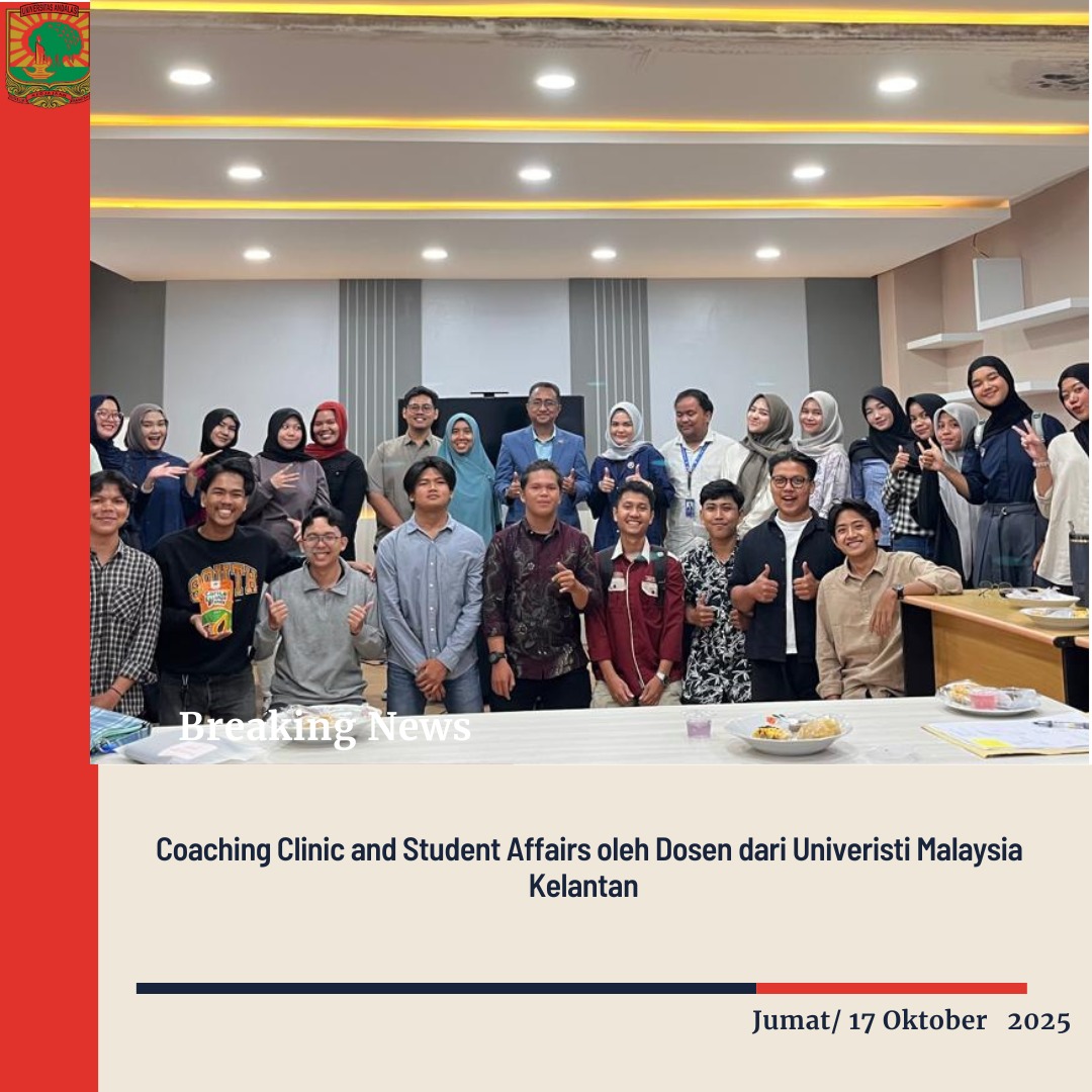 Padang, 17 Oktober 2025 — Fakultas Ekonomi dan Bisnis Universitas Andalas (FEB Unand) menggelar kegiatan “Coaching Clinic and Student Affairs” yang menghadirkan dosen tamu dari Universiti Malaysia Kelantan (UMK) pada hari Jumat, 17 Oktober 2025.