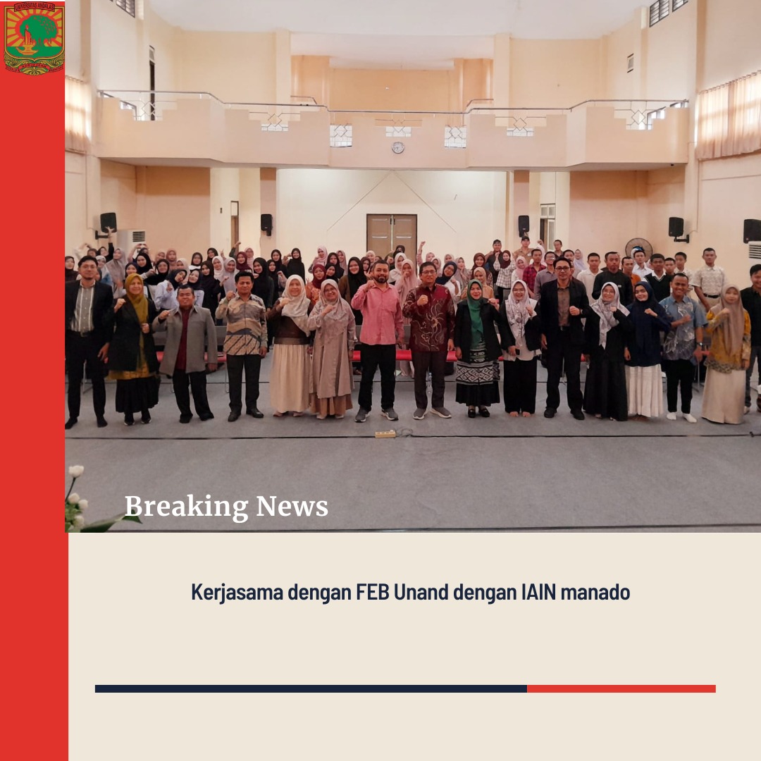 Fakultas Ekonomi dan Bisnis Universitas Andalas (FEB Unand) menjalin kerja sama dengan Institut Agama Islam Negeri (IAIN) Manado dalam rangka memperkuat kolaborasi akademik dan pengembangan tridarma perguruan tinggi. Kerja sama antara FEB Unand dan IAIN Manado ini mencakup berbagai bidang, di antaranya pengajaran, penelitian bersama, serta pelaksanaan program pengabdian kepada masyarakat. Melalui kemitraan ini, kedua institusi diharapkan dapat saling berbagi pengalaman dan memperkuat kapasitas akademik, terutama dalam bidang ekonomi dan bisnis berbasis nilai keislaman.