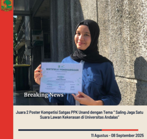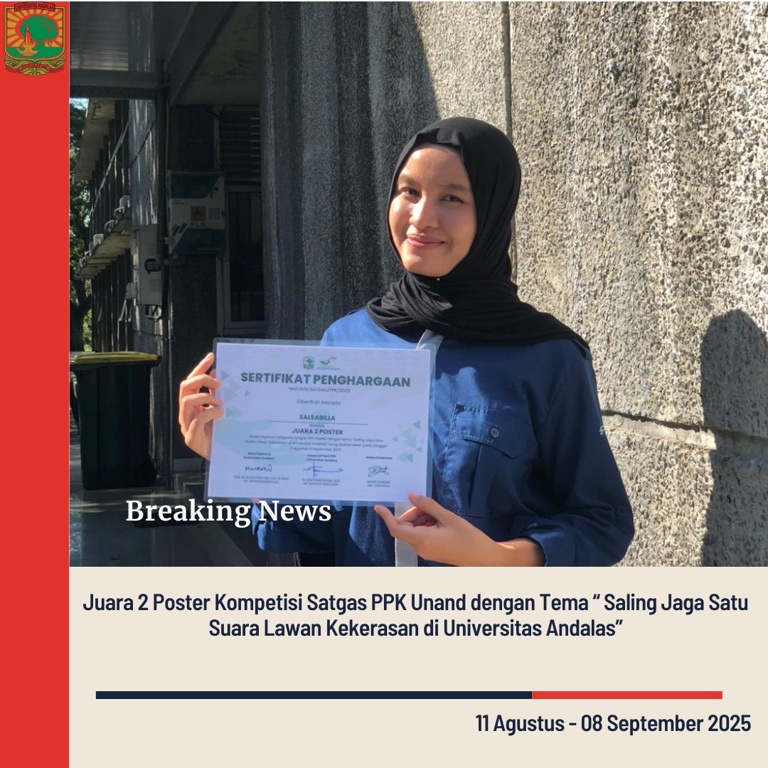 Payakumbuh, 08 September 2025 — Prestasi membanggakan kembali diraih oleh mahasiswa Fakultas Ekonomi dan Bisnis (FEB) Universitas Andalas Kampus Payakumbuh. Salsabila mahasiswa FEB Unand Kampus Payakumbuh berhasil meraih Juara 2 dalam ajang Kompetisi Poster Satgas Pencegahan dan Penanganan Kekerasan (PPK) Universitas Andalas tahun 2025.