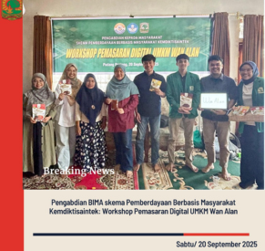 Payakumbuh, Sabtu 20 September 2025 – Tim dosen Fakultas Ekonomi dan Bisnis Universitas Andalas melaksanakan kegiatan Pengabdian kepada Masyarakat (PkM) melalui Program BIMA Skema Pemberdayaan Berbasis Masyarakat Kemdikti-Saintek dengan tema “Workshop Pemasaran Digital untuk UMKM Wan Alan”.